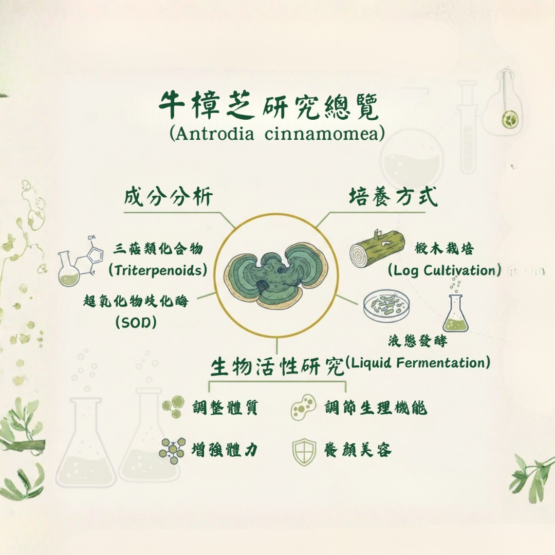 「回歸原始、尊重本質」為初衷,專注於牛樟芝相關產品的研發與品質管理,致力於在自然與科學之間,找到最恰當的平衡。